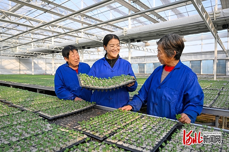 1月19日,张莎莎(中)在向农户介绍育苗经验,并征求意见建议。河北日报记者 张 昊摄