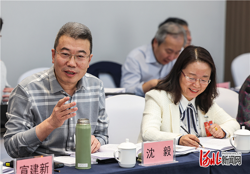 1月26日,省政协委员沈毅(左)在认真讨论政府工作报告。河北日报记者 耿辉摄