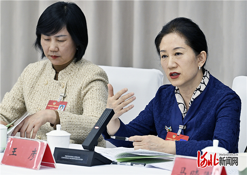 1月26日,省政协委员王彦(右)在认真讨论政府工作报告。河北日报记者 贾恒摄
